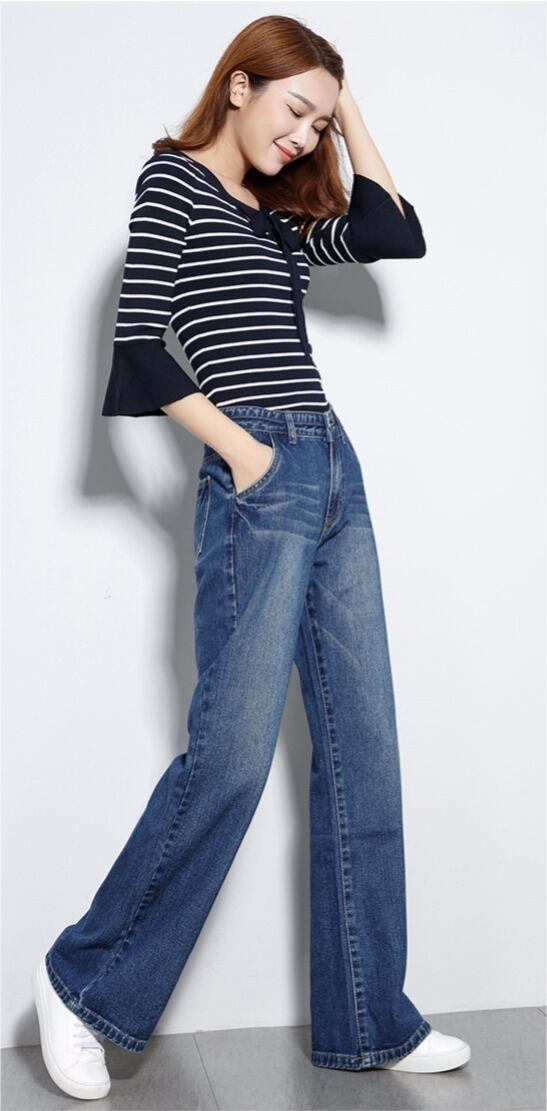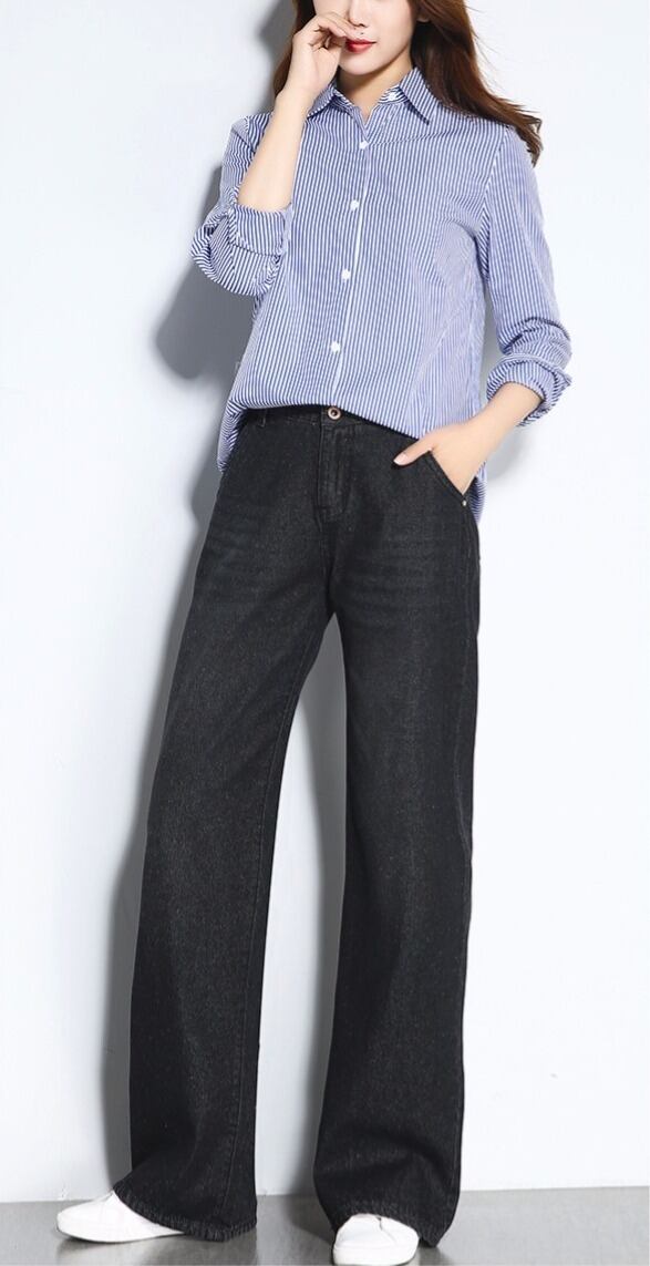 全2色 ストレート ジーンズ デニム ワイドパンツ ロングパンツ ハイウエスト 裏起毛 裏ボア 秋冬 スリム カジュアル