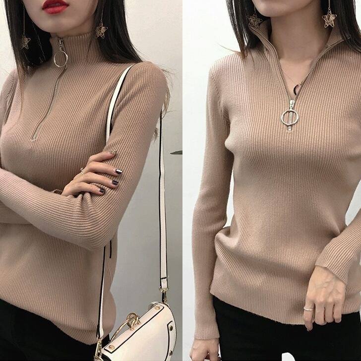 全5色 スリムニット レディース タートルネック ニット 長袖 セーター ジッパー お洒落 開き冬 可愛い タートルネック ニット 韓国