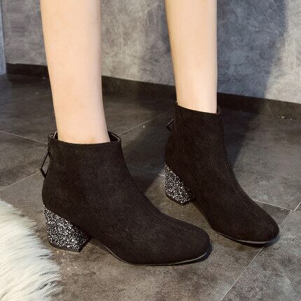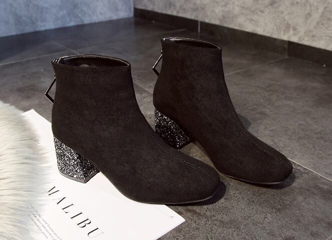 ショートブーツ スキニーブーツ スエード調 ラメ 裏起毛 ジッパー ゴージャス 甘辛 シック 秋冬