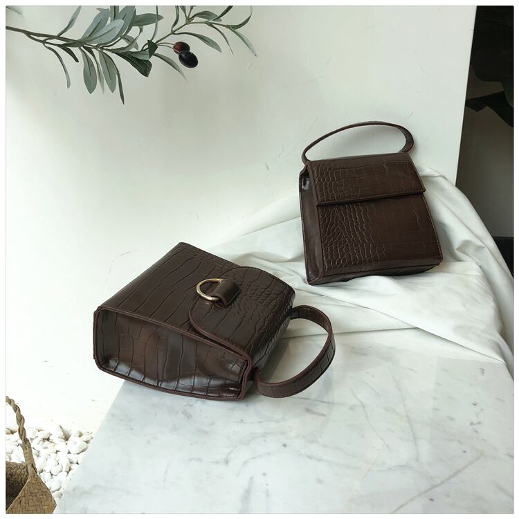 全2色 2Way ショルダーバック ハンドバック クロコダイル風 磁気バックル エンボス加工 カジュアル クール ワニパターン ファッション 鞄 かばん 大人 四角 金具アクセント メッセンジャーバック