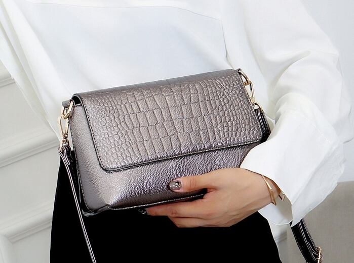 全4色 ショルダーバッグ ハンドバック クロコダイル柄 シンプル