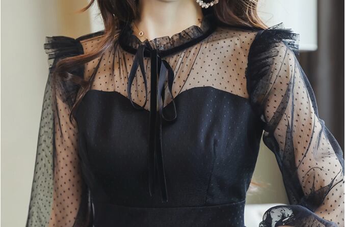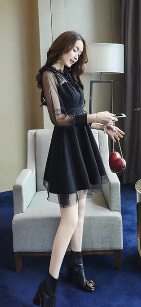 シフォンワンピース ドレス ラッフルフリル ハイネック ショート丈 長袖 デート お呼ばれ 清楚 大人可愛い フェミニン