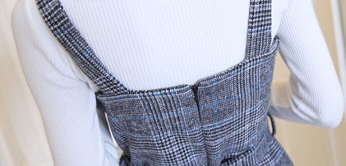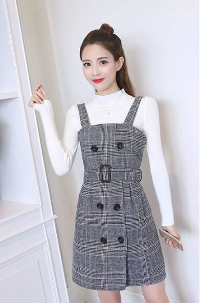 全2色 セットアップ ワンピース ミニ丈 グレンチェック柄 ウエストベルト ハイウエスト ストラップ フロントボタン 秋冬 レトロ 大人可愛い デート お出かけ デイリー 20代