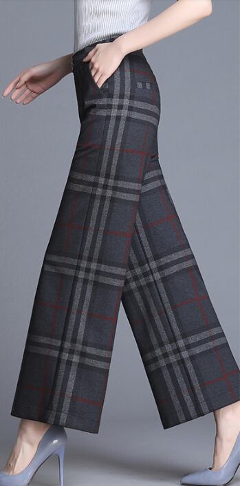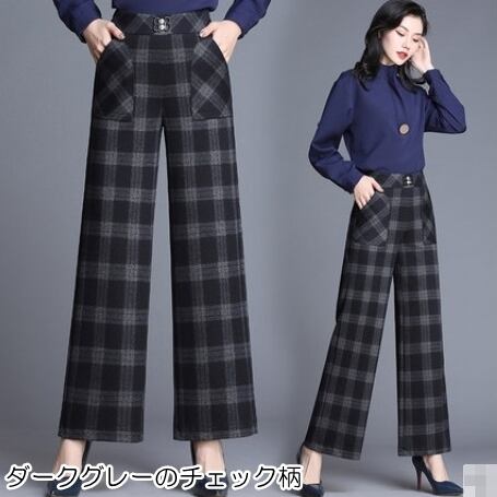 全4色 ワイドパンツ ハイウエスト チェック柄 カジュアル 秋冬 レトロ 大人可愛い デート お出かけ デイリー 20代