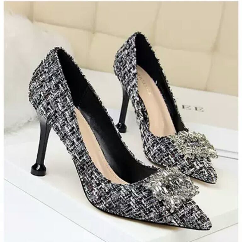 全3色 パンプス ツイード エレガント 結婚式 パーティー ピンヒール フォーマル 秋冬 ドレスコーデ