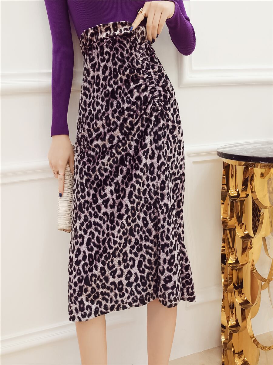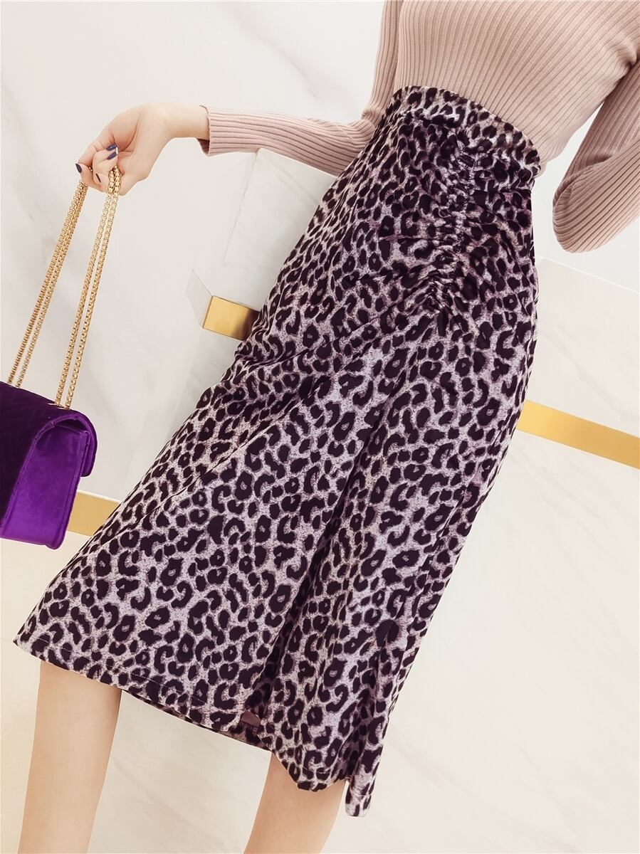 全2色 ハイウエストスカート レオパード柄 ミモレ丈 ひざ下丈 秋冬 レトロ 大人可愛い デート お出かけ デイリー 20代