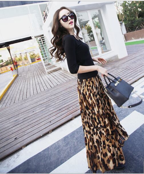 プリーツスカート レオパード柄 ロング丈 秋冬 レトロ 大人可愛い デート お出かけ デイリー 20代