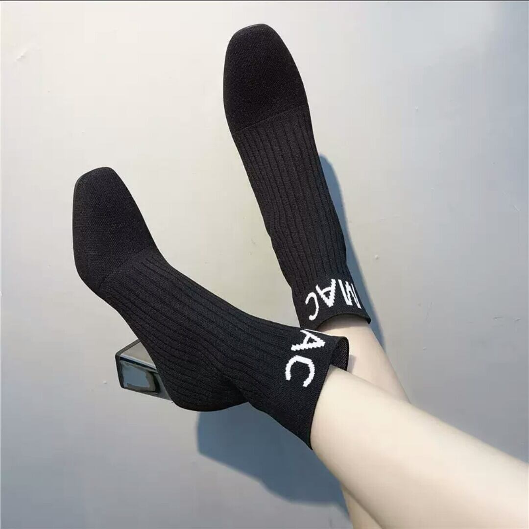 ショートブーツ 黒 文字 レタリング ヒール 太ヒール 歩きやすい 秋冬 黒 ブラック お出かけ デート 女子会 ストリート モード