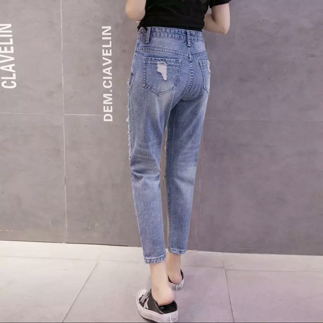 ダメージデニム ストレート スリム カジュアル デザイン ブルーデニム お出かけ お買い物 デート 個性的 春 夏 秋 冬