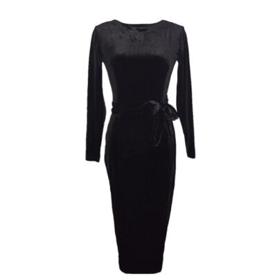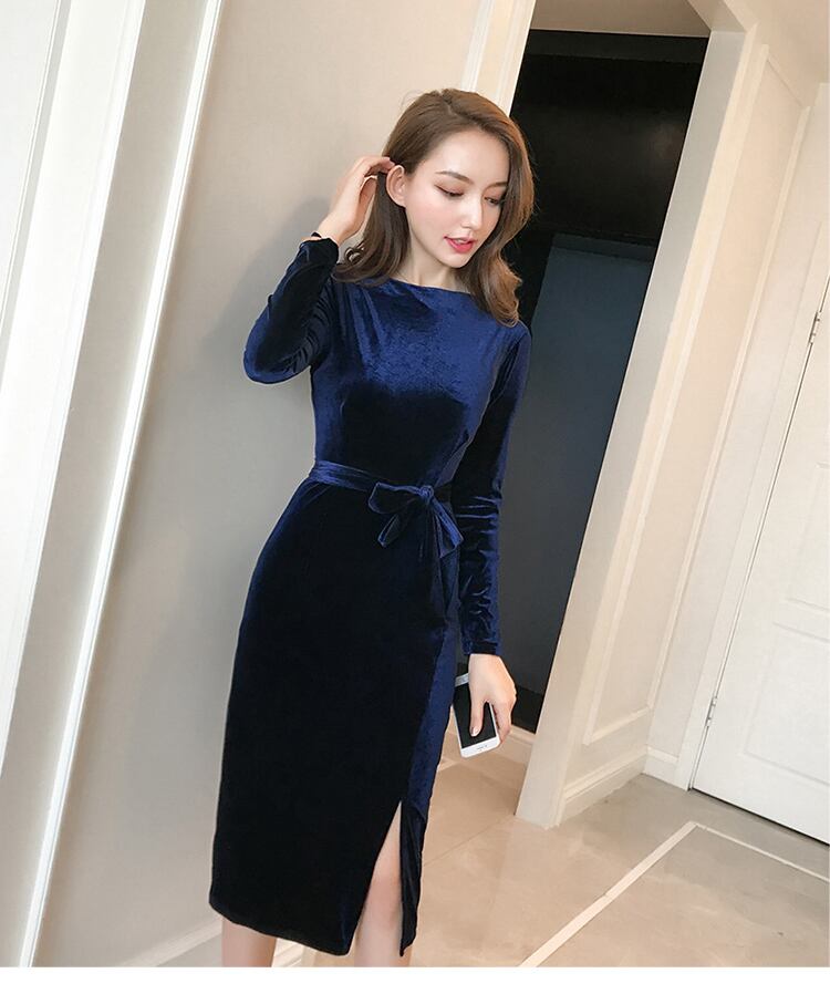 全2色 ブラック ネイビー ワンピース タイト ひざ丈 スリット セクシー フォーマル 上品 エレガント お呼ばれ 長袖 デート 女子会