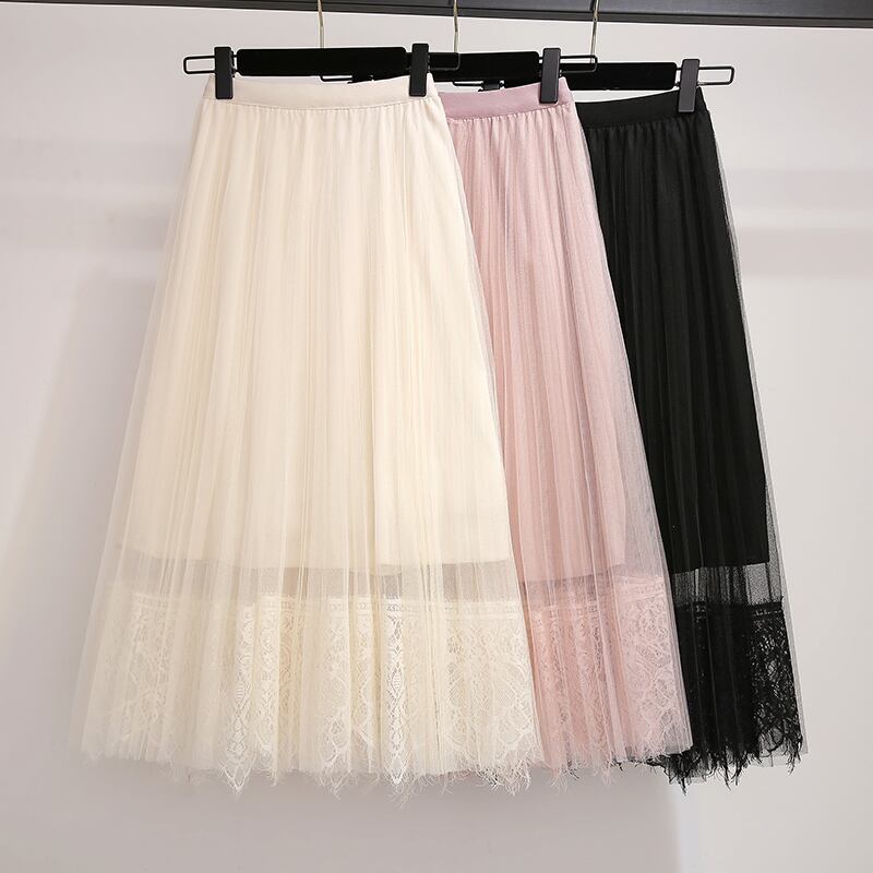 全3色 チュール スカート レース シースルー 透け感 ロング丈 ボトムス ミモレ丈 ふんわり 上品 可愛い ガーリー キュート きれいめ フレア ハイウエスト 秋