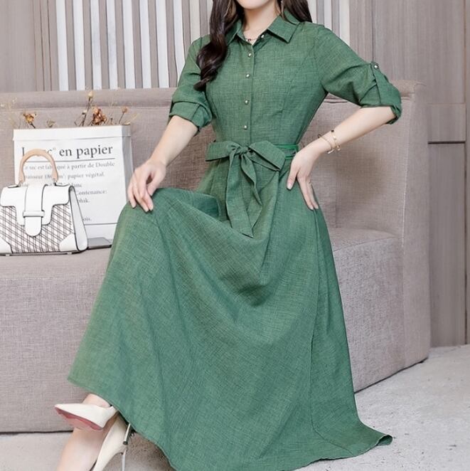 トレンドのロング丈シャツワンピースです。