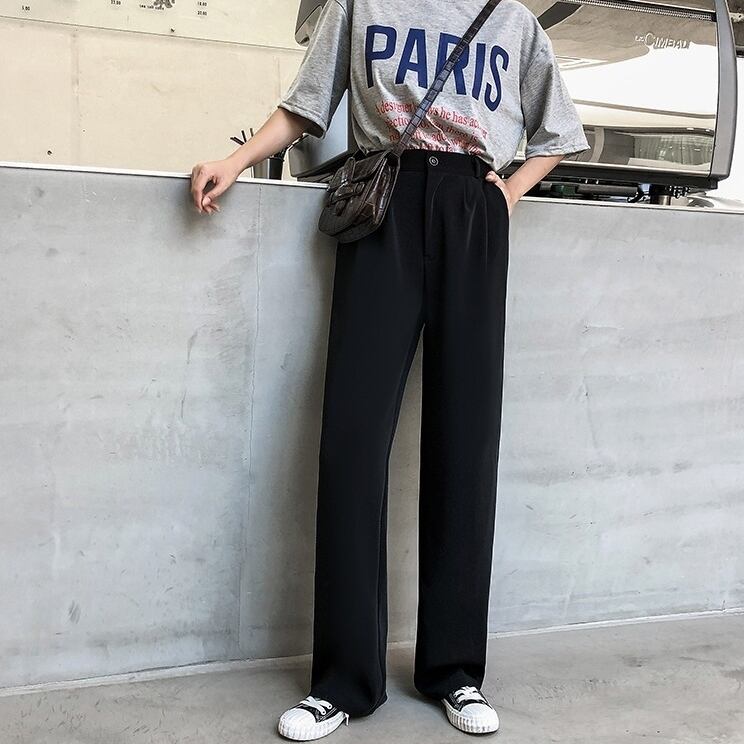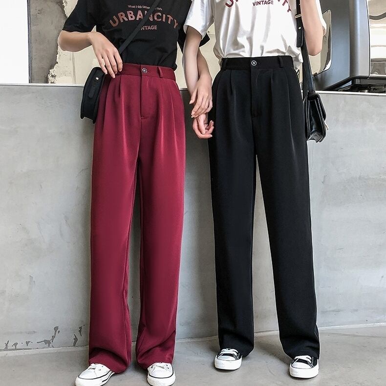 全2種2色 ワイドパンツ 長ズボン ストレート 美脚 足長 ハイウエスト ドレープ 秋冬 ゆったり 薄い カジュアル スリム デイリー