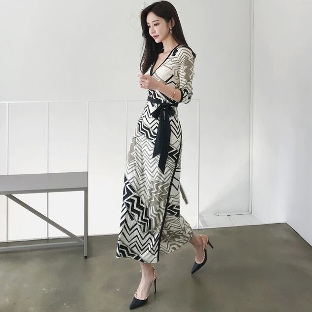 スリット入り Ⅴネック ドレス ロングワンピース キレイめ お呼ばれ 上品 デート 女子会 フォーマル 秋冬 タイトシルエット セクシー