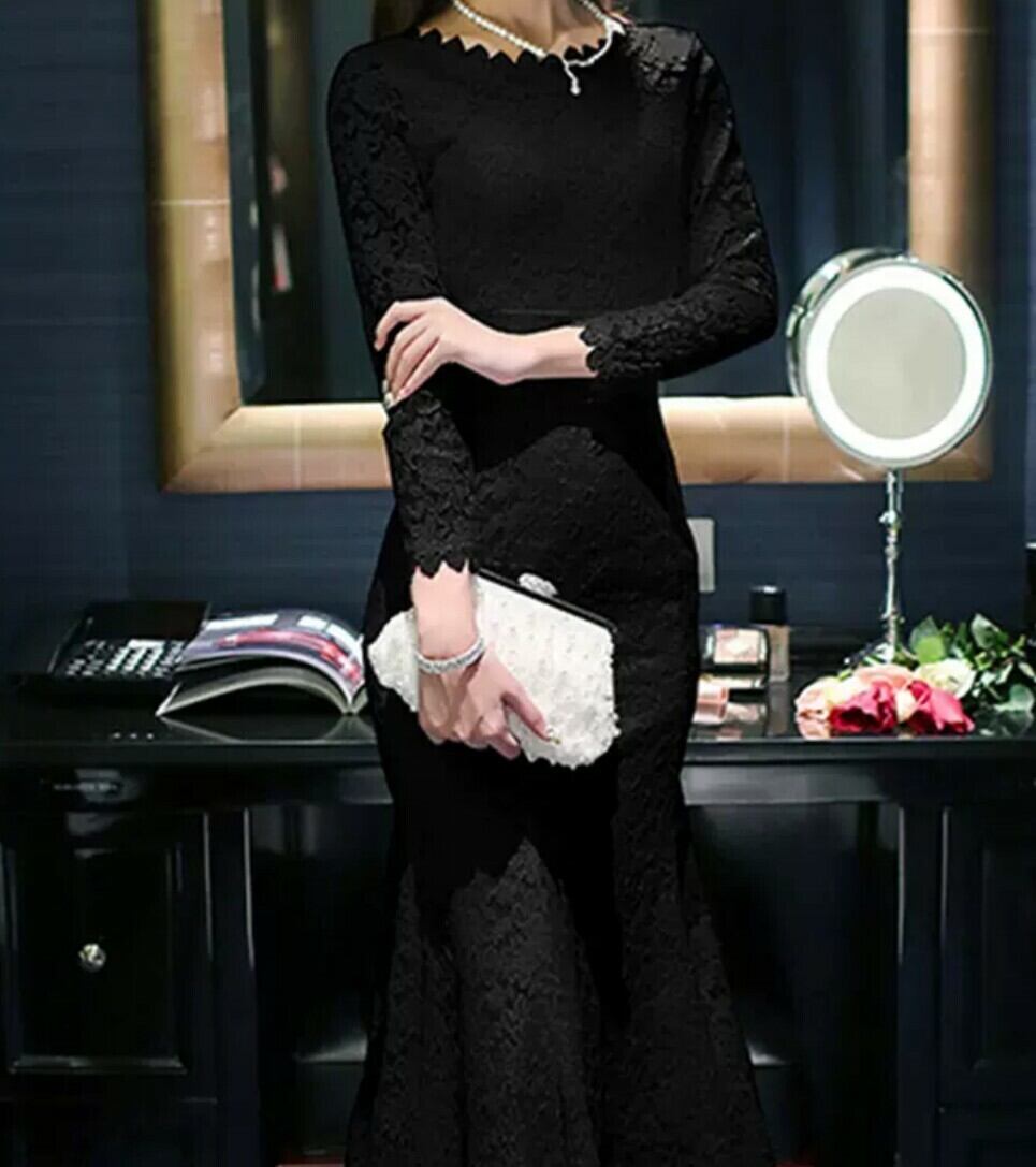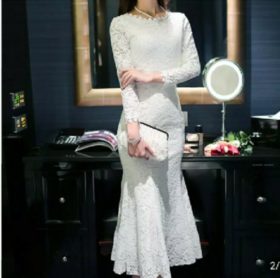 全2色 マーメイド ドレス ワンピース レース ロング丈 スカラップ 上品 大人っぽい デコルテ 秋冬