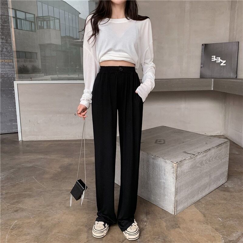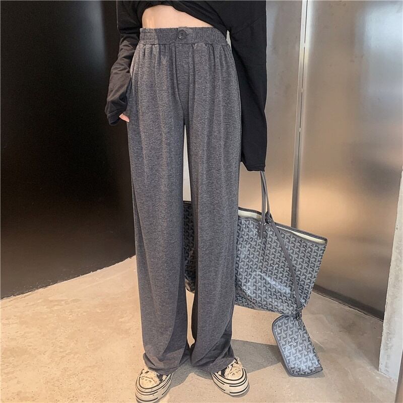 全2色 スウェットパンツ ハイウエスト ロング丈 カジュアル 無地 秋冬 ゆったり ストレート ウエストゴム