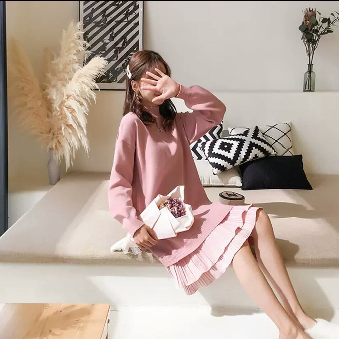 全2色 マタニティ ワンピース ひざ丈 フリーサイズ 可愛い ママ 授乳 お出かけ お買い物 秋冬 春 無地
