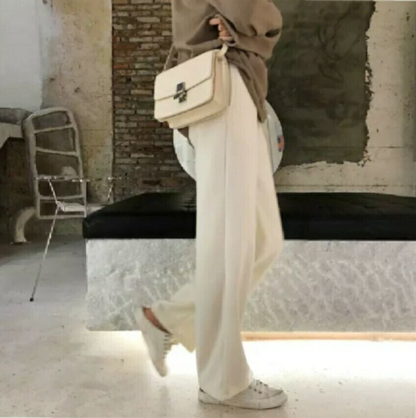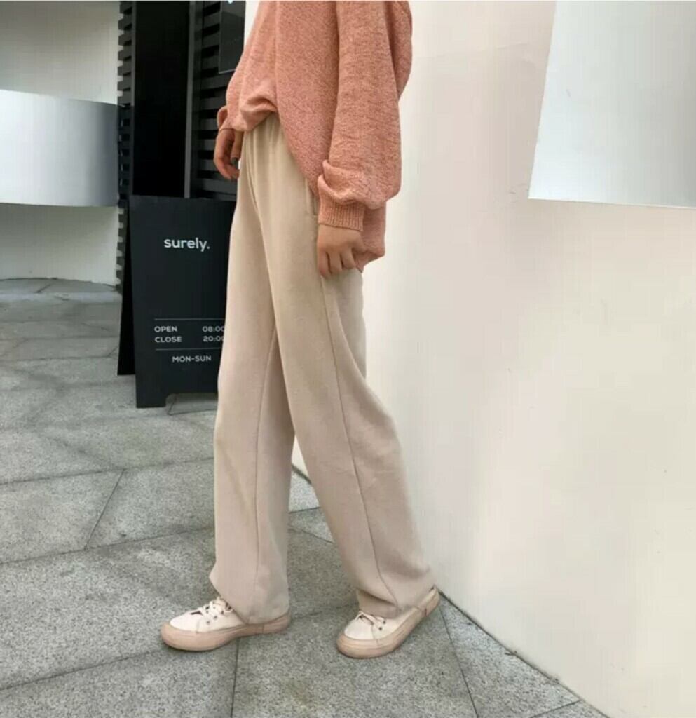 全4色 カジュアルパンツ ストレートパンツ 秋冬 ドロップ ウエストゴム リラックス コットン ベイホワイト ダークグレー アプリコット ブラック ストレート