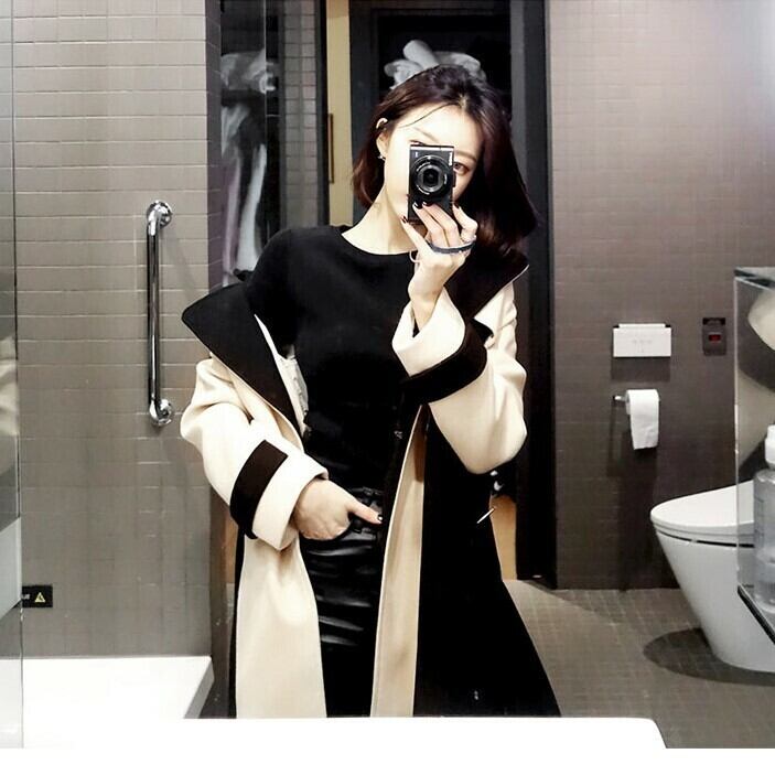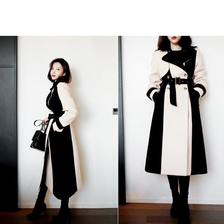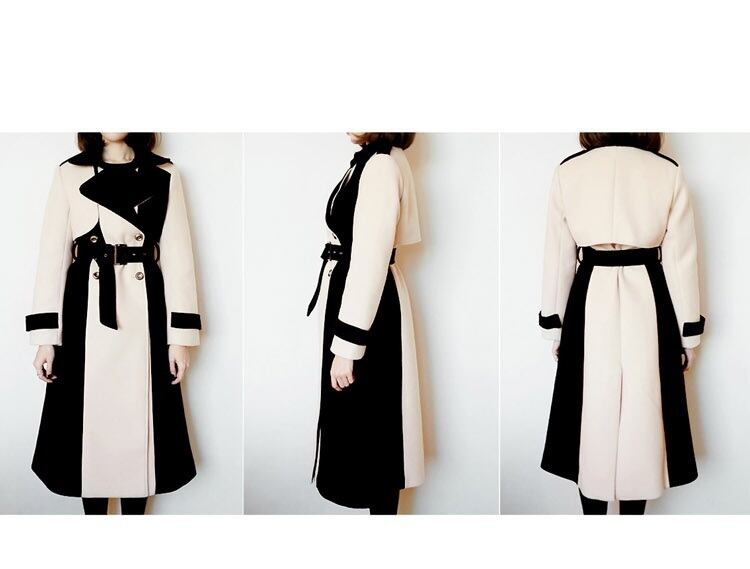 アウター ロングコート バイカラー レトロ ダブルボタン ベルト ゆったり きれいめ カジュアル 大人可愛い エレガント 防寒 着痩せ お出かけ デート 通勤 秋冬