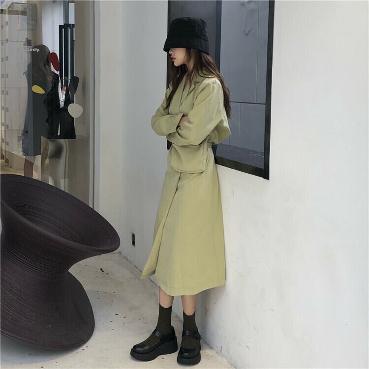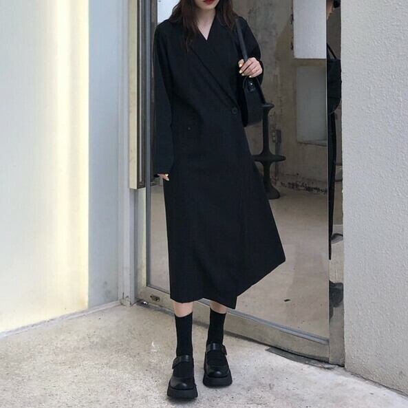 全3色 ロングコート テーラード ワンピース ゆったり 着痩せ 大人可愛い カジュアル きれいめ 無地 ブラック グリーン ブラウン 秋冬