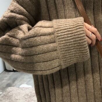 ニット セーター ざっくり ハイネック あったか 秋冬 長袖 大人可愛い ボリューム袖 ガーリー オーバーサイズ くすみカラー