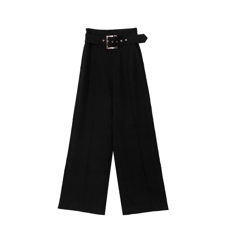 パンツ ハイウエスト ワイドレッグ ストレート ワイドパンツ エレガント 上品 ベルト ブラック きれいめ ゆったり 秋 冬 春