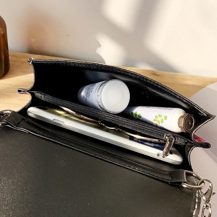 チェーンストラップとキラキラのスパンコールが華やかなショルダーバッグ。