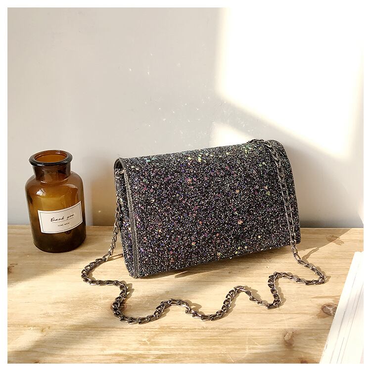 全3色 ショルダーバック パーティバック スパンコール キラキラ 小さい チェーンストラップ カジュアル パーティ フォーマル お出かけ 結婚式 二次会 デート ブラック シルバー レインボー 秋冬