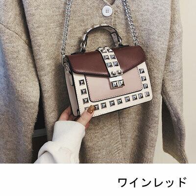 全6色 ショルダーバック スタッズ 鞄 バック レディース ミニ スクエア 秋冬 レトロ 大人可愛い デート お出かけ デイリー 20代