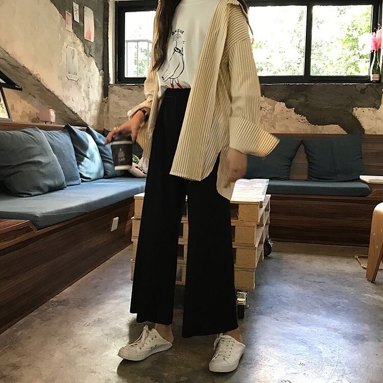 ワイドパンツ アンクル丈 ハイウエスト 無地 ゆったり ウエストゴム 楽ちん カジュアル スポーツ デイリー ブラック 秋冬