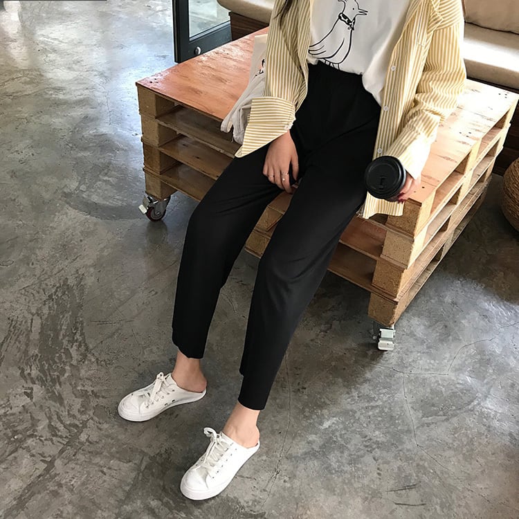 足首の見えるアンクル丈がすっきりしたデザイン。