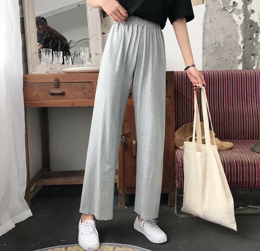 全2色 ワイドパンツ スウェット ゆったり 秋冬 無地 ハイウエスト ウエストゴム