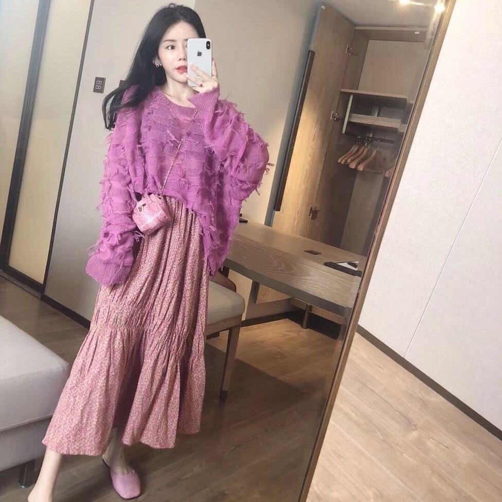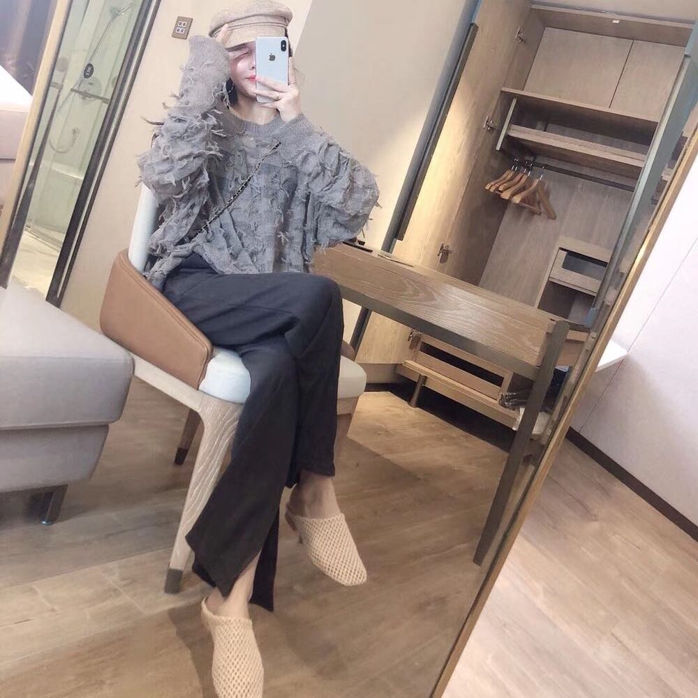 全4色 セーター ニットソー シャギーニット ボリューム袖 長袖 レトロ 無地 ゆったり 個性的 大人可愛い フェミニン こなれ感 エレガント フォーマル 秋冬 お出かけ デート 女子会 レトロ ブラック パープル ブルー グレー