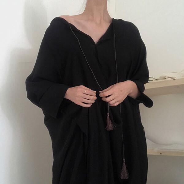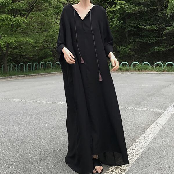 ワンピース ロング丈 マキシ丈 ソリッドカラー Vネック ゆったり 無地 長袖 秋冬 レトロ 大人可愛い デート お出かけ デイリー 20代