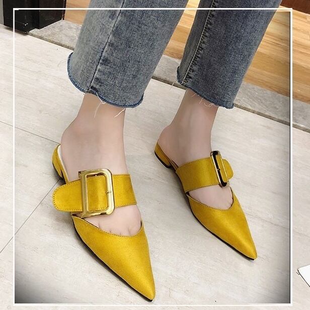 全2色 サンダル カジュアル セクシー 秋冬 お出かけ 通勤 ローヒール ブラック イエロー バックル ベーシック