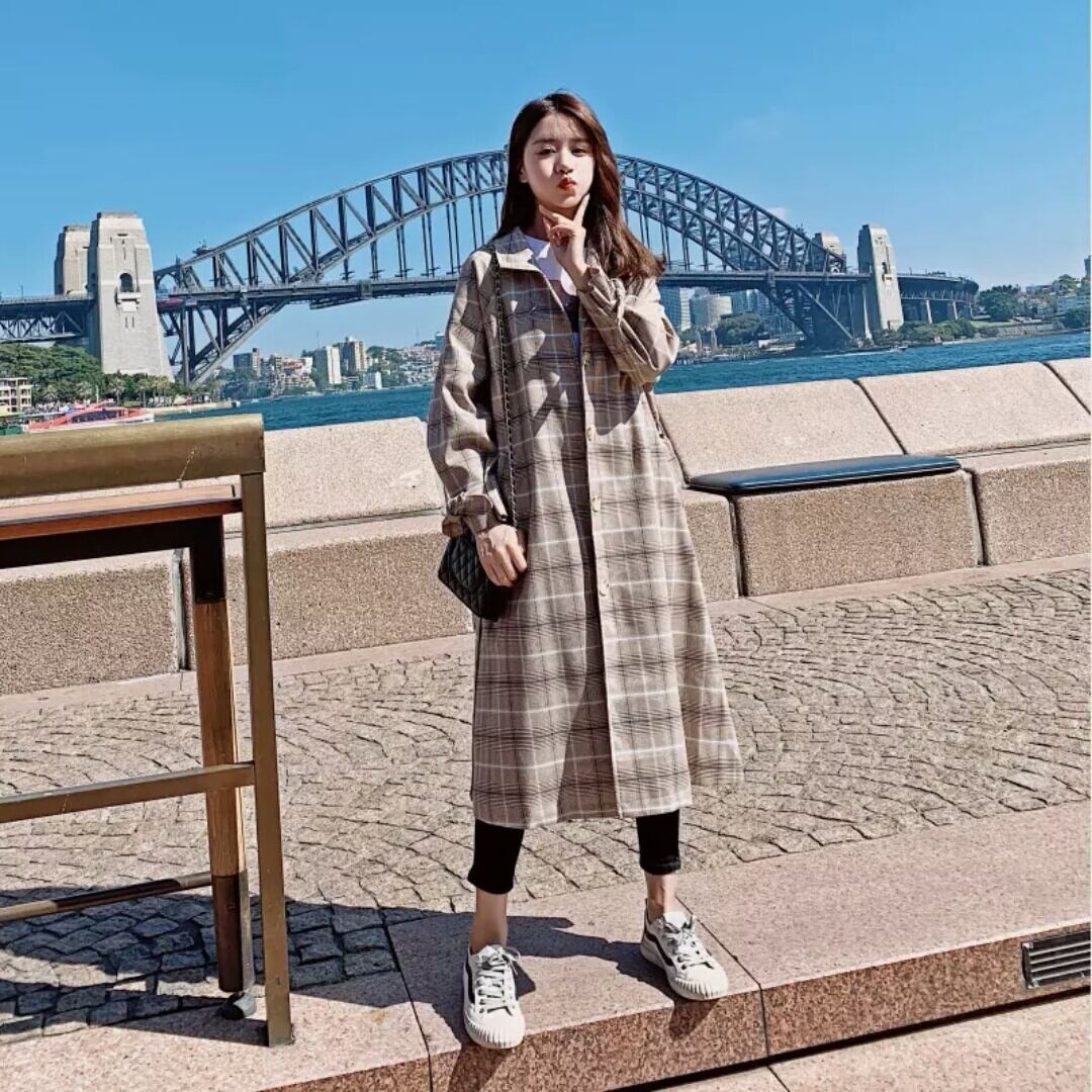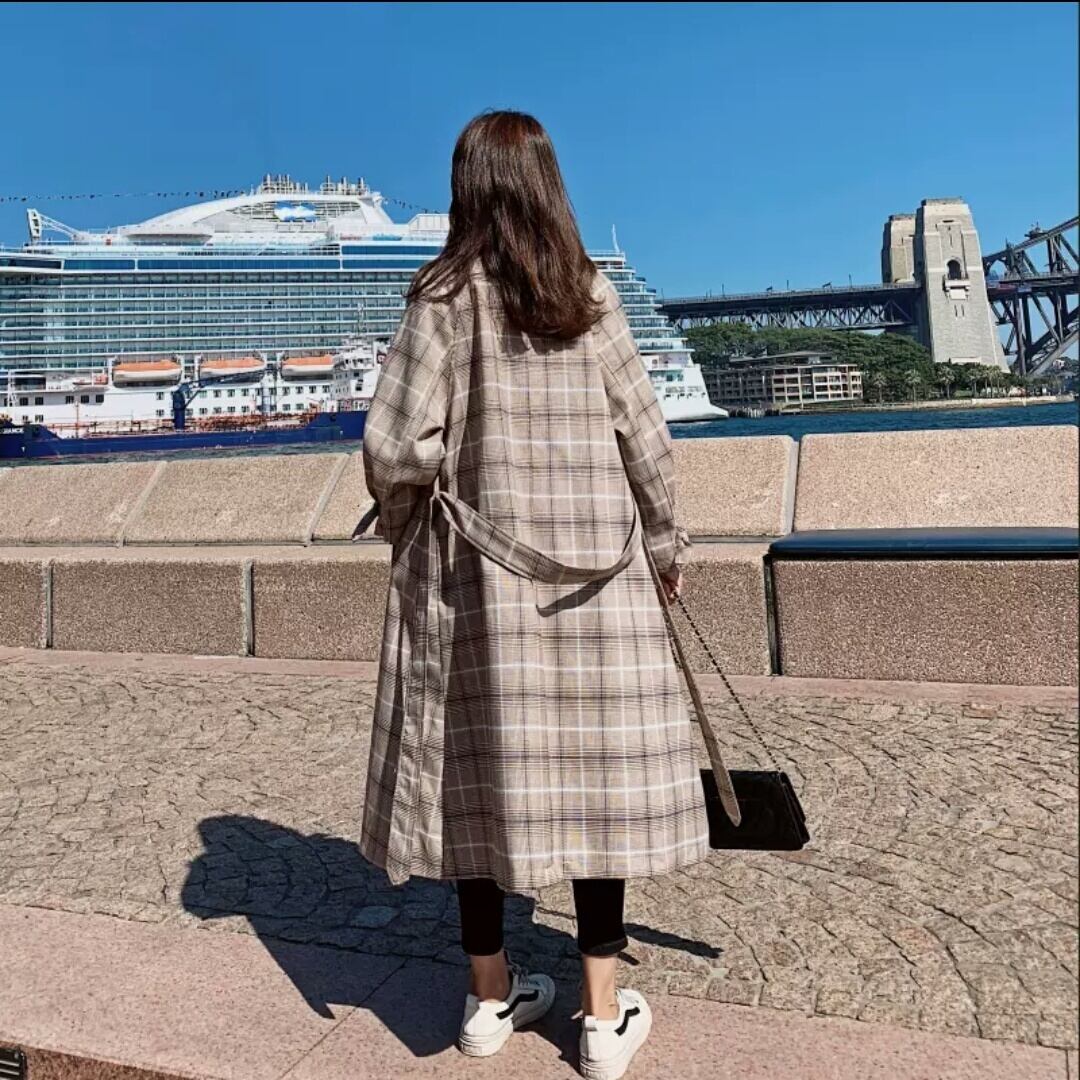 チェック柄 ウインドブレーカー コート 薄手 防寒 ロング ベージュ 秋冬 春 お出かけ お買い物 デート 女子会 通学 通勤 学生 可愛い 大人 カジュアル キレイめ