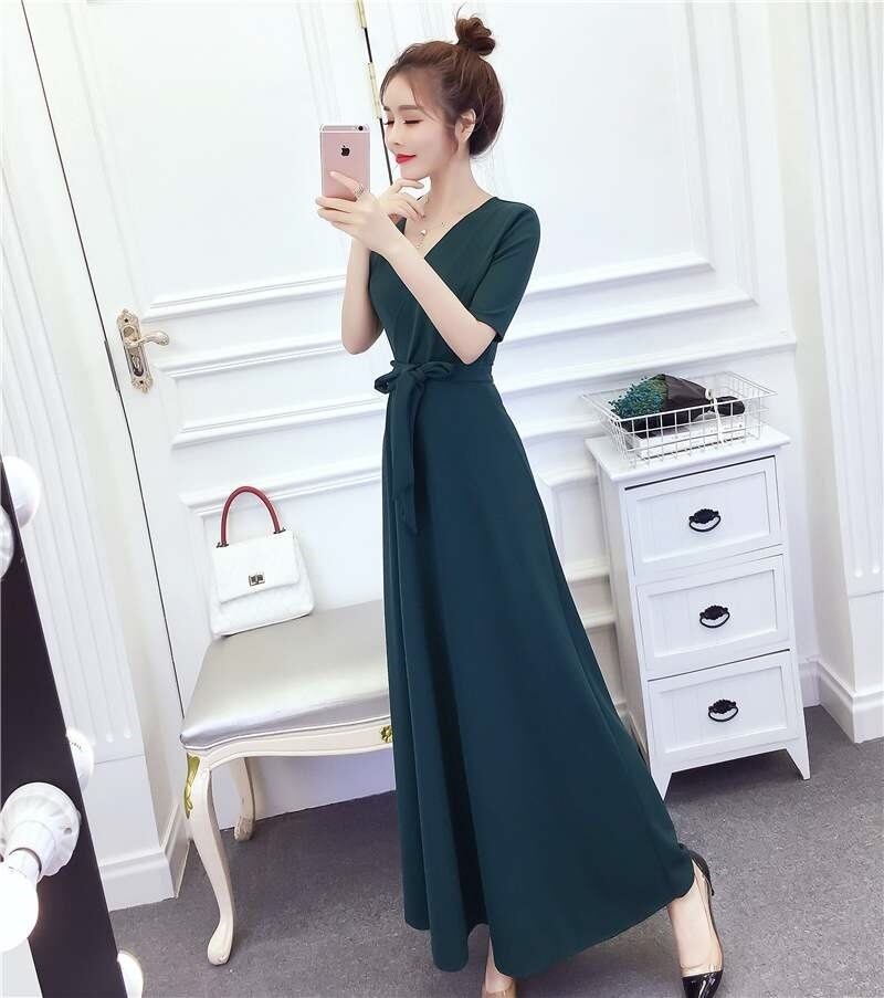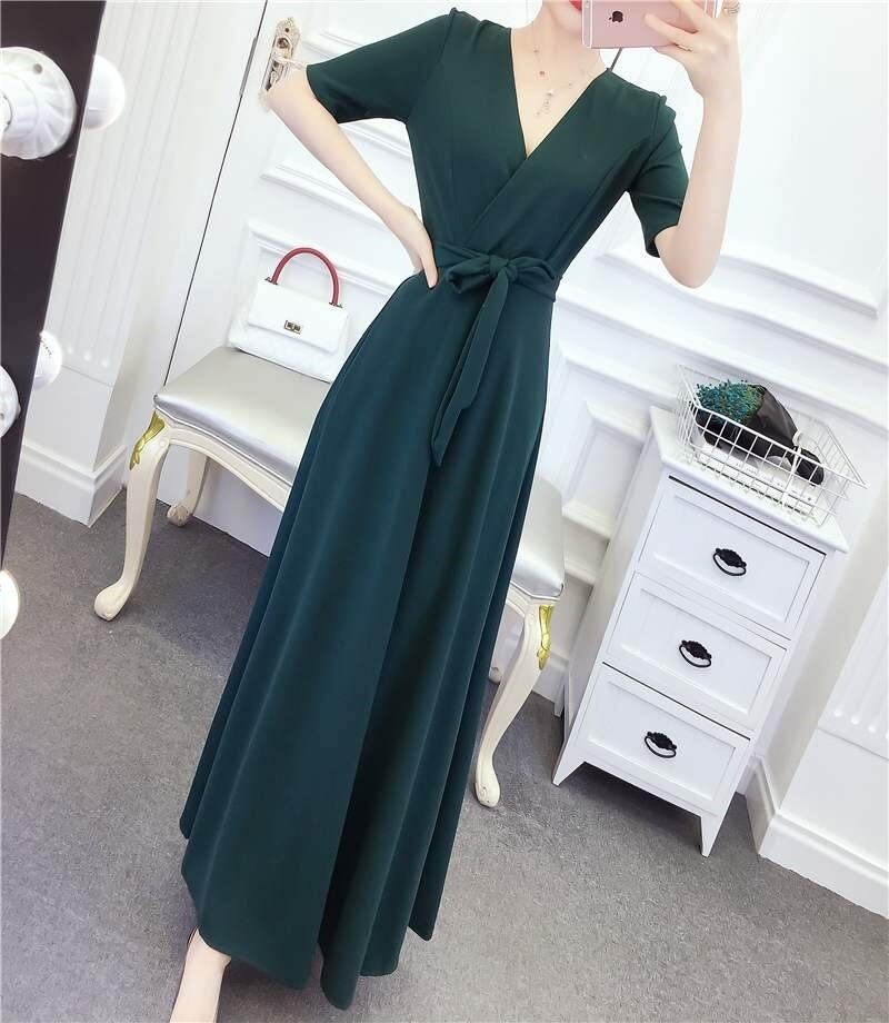 全3色 パーティドレス ロング丈Vネック フォーマル エレガント 半袖 ロングドレス お呼ばれドレス 無地