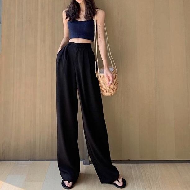 全2色 ハイウエスト ワイドレッグ ドレープ パンツ 秋冬 ゆったりシルエット カジュアル ストリート OL 通勤 デート 女子会 ママ ショッピング お出かけ お呼ばれ
