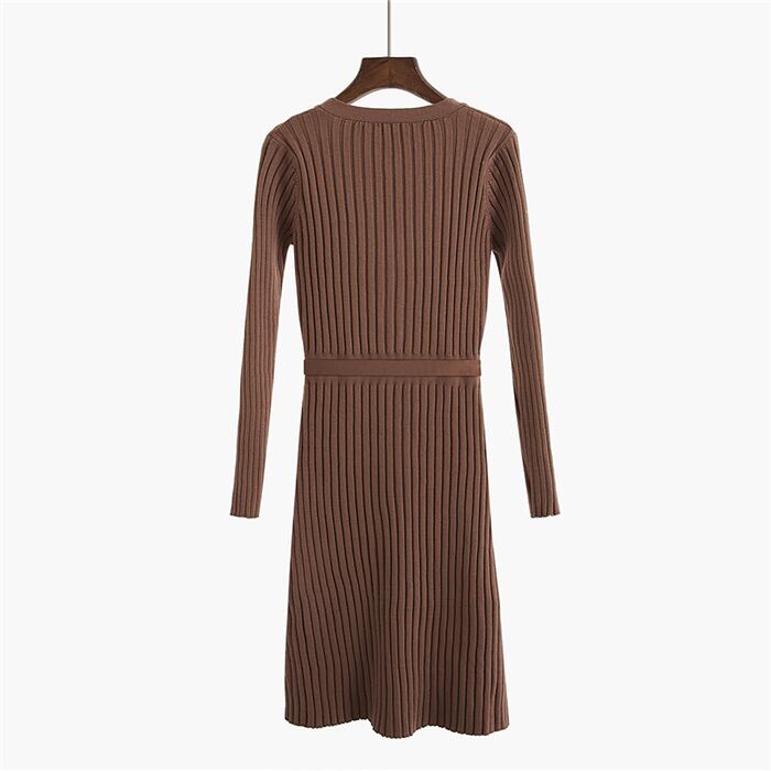 全3色 ミモレ丈ワンピース フェミニン 長袖 オフィス Ⅴネック 細身 着やせ デード 女子会