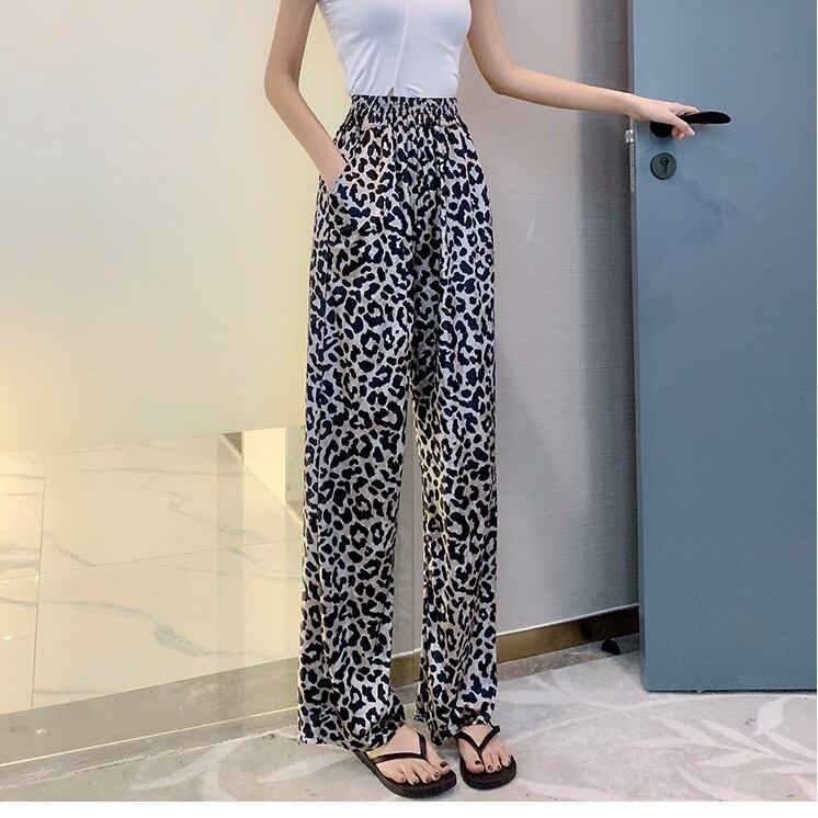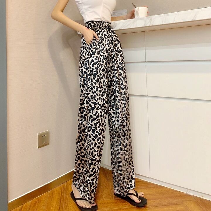全2色 ハイウエストパンツ ヒョウ柄 秋冬 ワイドパンツ ロング丈 レオパード柄 カジュアル アニマル柄