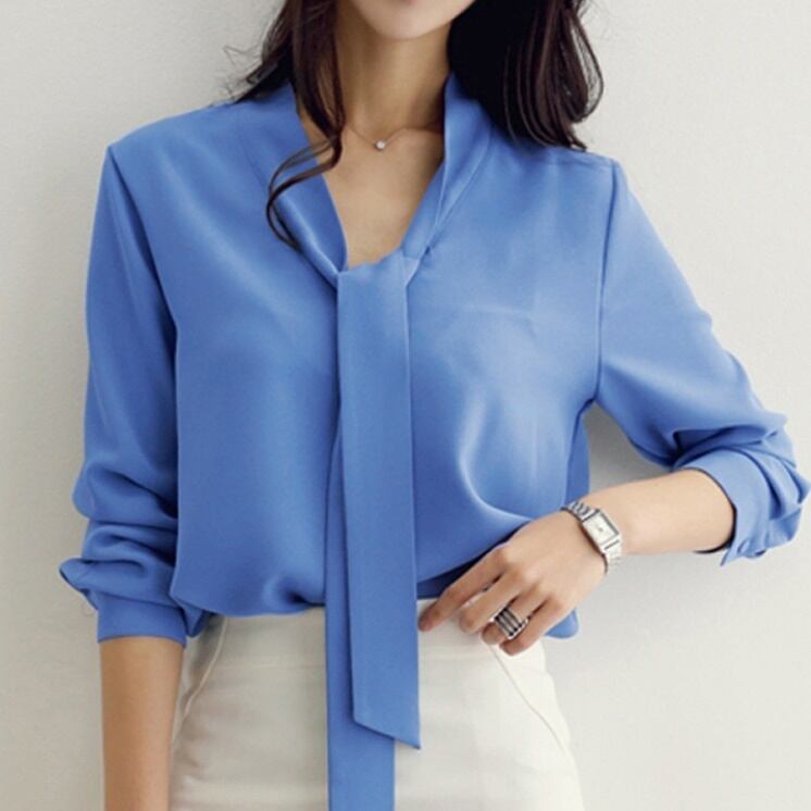 全2色 ブラウス シフォン ボウタイブラウス 秋冬 きれいめ フォーマル 通勤 オフィス 長袖 リボン ベーシック