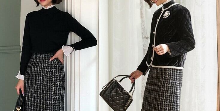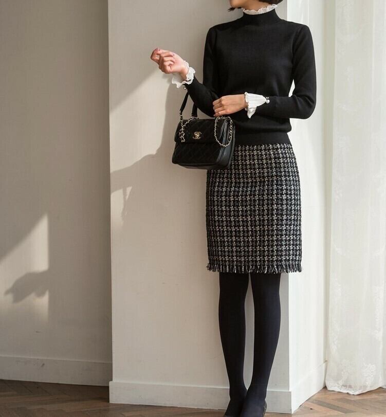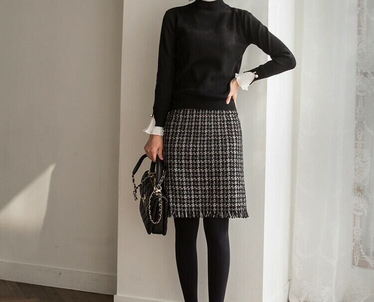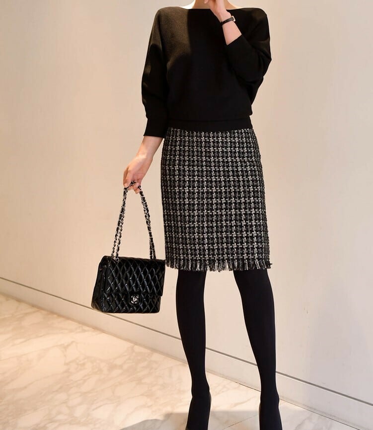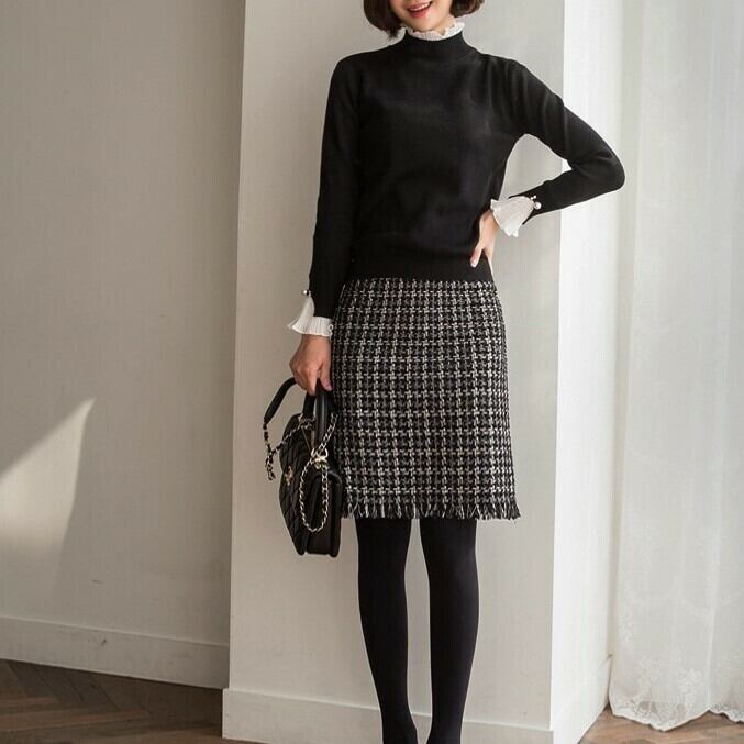 繊細な千鳥格子柄のミックス生地が魅力のタイトスカートです♪