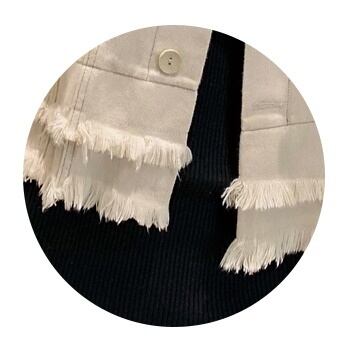 ショート丈でワンピースやハイウエストパンツなどに似合うデザインです!