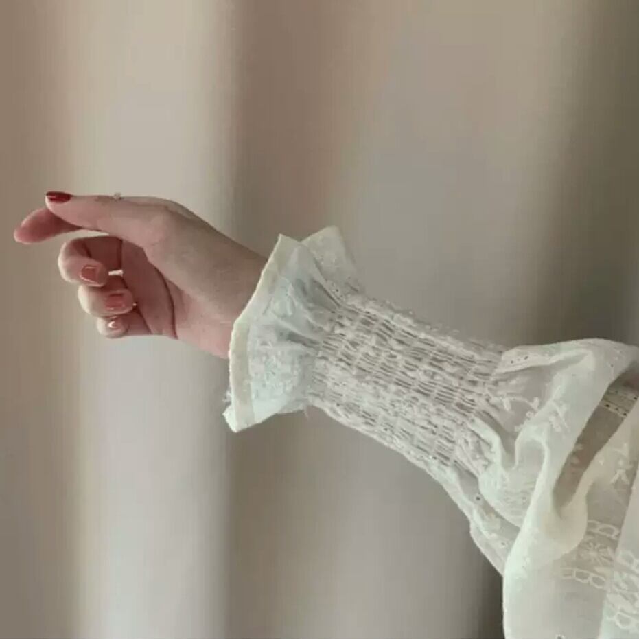 袖フリル ブラウス シャツ トップス フレア 袖コンシャス 無地 白 ホワイト 大人 エレガント キレイめ オフィス お出かけ お買い物 デート 女子会 通学 通勤 秋冬 春