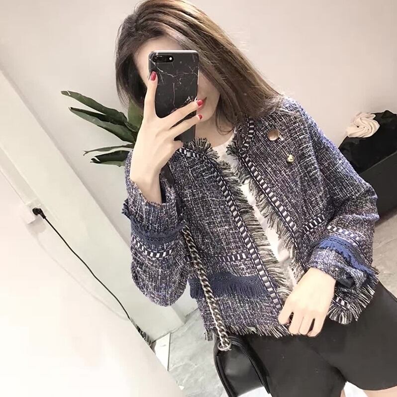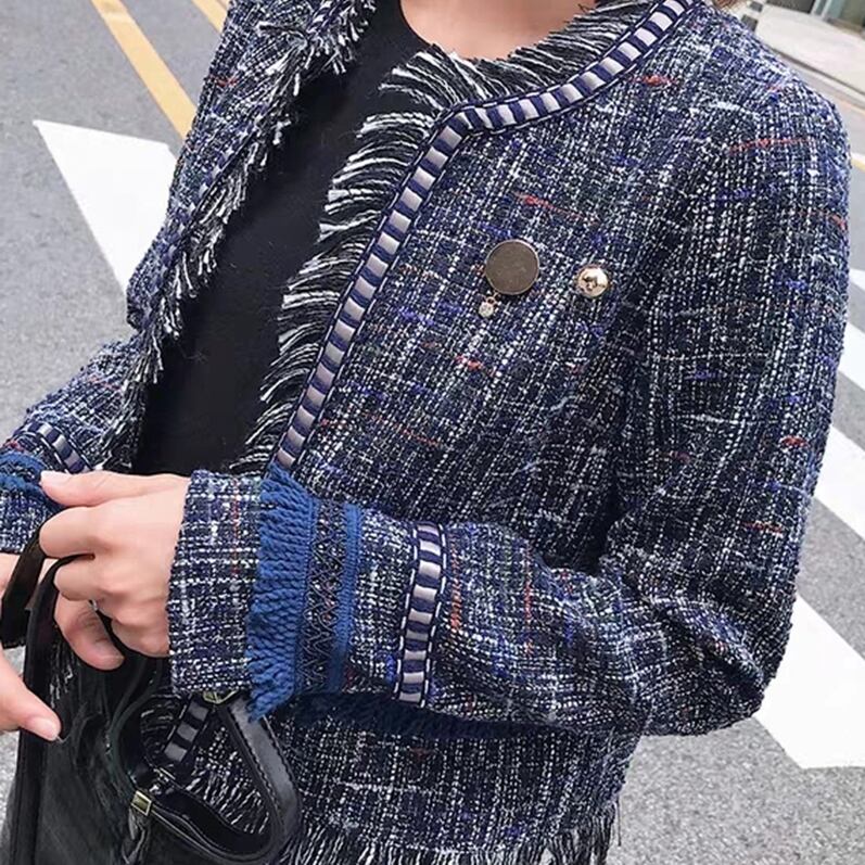 フリンジ付き ノーカラー ツイード ジャケット チェック柄 長袖 ショート丈 秋冬 防寒 あったか 女子会 お呼ばれ デート