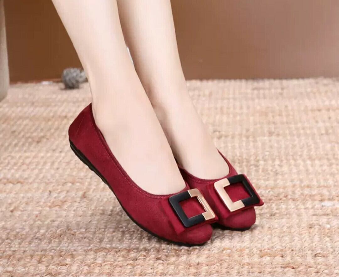 全4色 フラットヒール パンプス バレエシューズ 歩きやすい シンプル 通勤 ブラウン ベージュ ブラック レッド 秋冬
