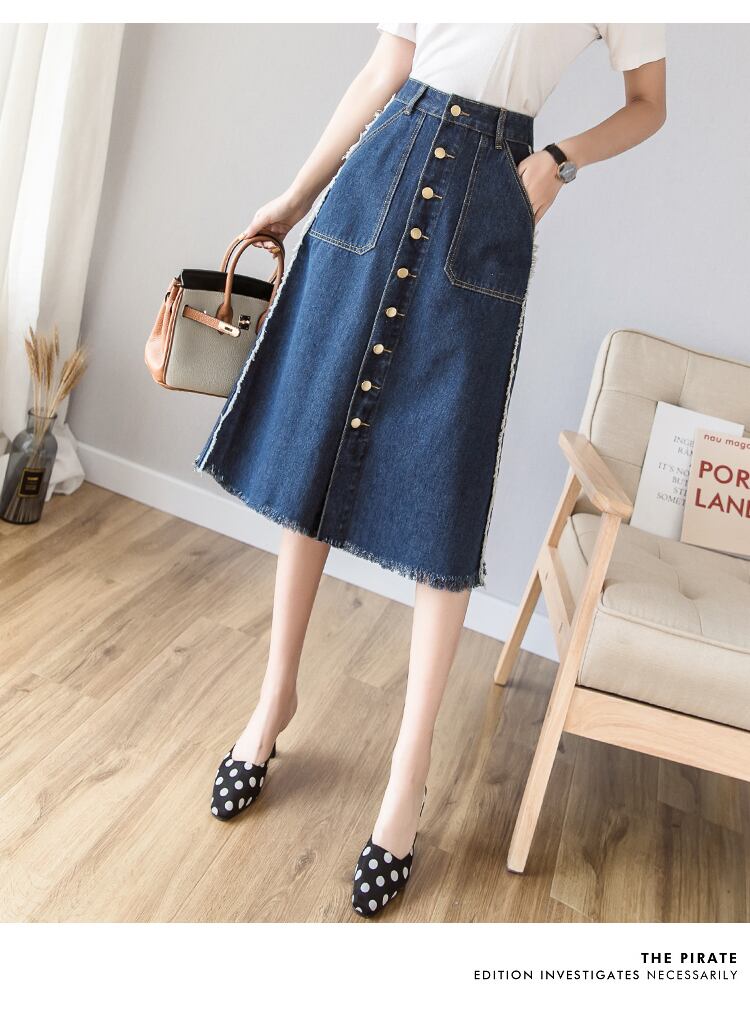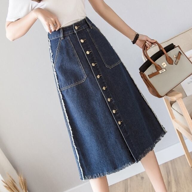 デニムスカート ひざ丈 フロントボタン カジュアル フェミニン 女子会 デート