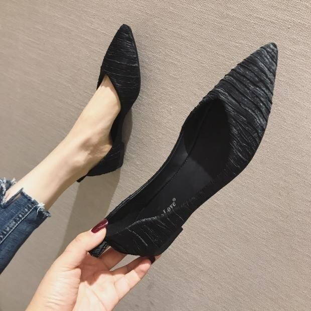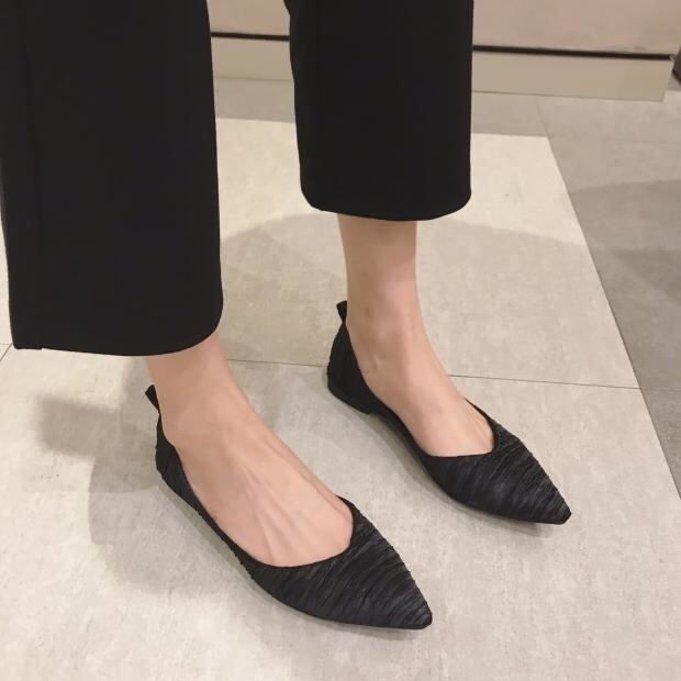 全3色 フラットシューズ ポインテッドトゥ ローシューズ しわ加工 秋冬 通勤 セクシー きれいめ シューズ 靴 低め 1cm