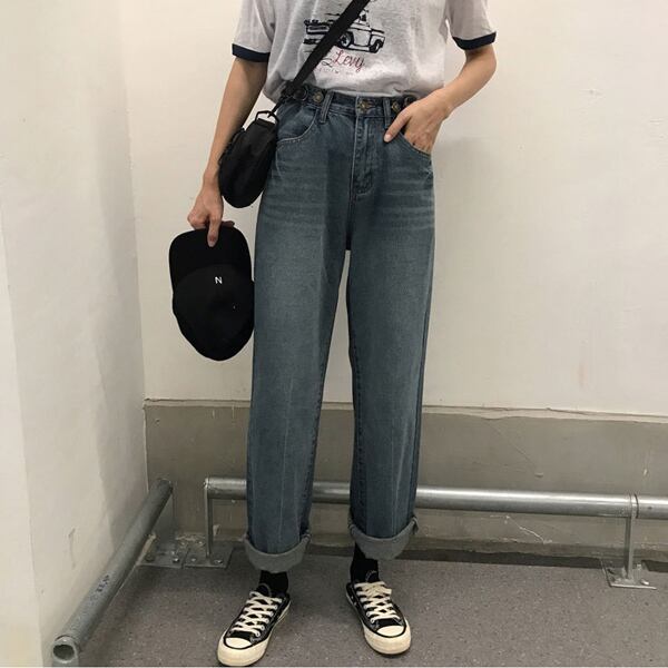 パンツ ハイウエスト ワイドレッグ デニム ジーンズ ロールアップ ストレート ワイドパンツ レトロ 大人可愛い デート お出かけ デイリー レディース