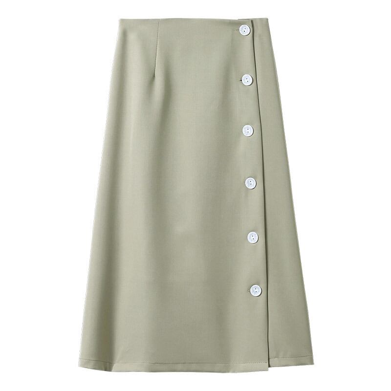全2色 ハイウエストスカート ひざ下丈 無地 サイドボタン Aライン 秋冬 レトロ 大人可愛い デート お出かけ デイリー 20代